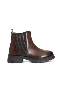 Women's leather ankle boot with side elastic bands to make it easier to put on. rounded shape. 40mm heel.