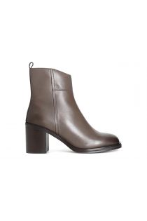 Women's rounded leather ankle boot. zipper on the inside of the shoe. the insole is in leather. thick heel 75 mm high.