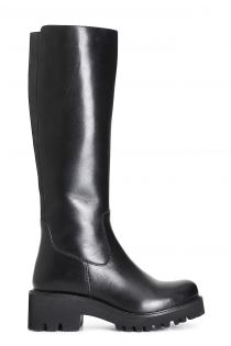 Women's leather boot with elastic on the back. 50mm high heel. the insole is in leather.