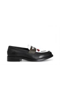 women's leather moccasin with patch black combo