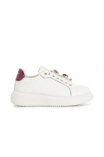 women's leather sneakers with removable jewel accessories white/bordeaux