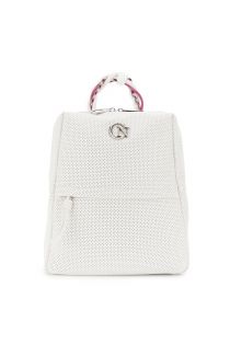 women's nappa-effect backpack with micro perforations and metal logo ivory