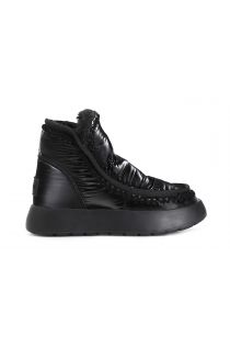 Women's ankle boot with raised sole. nylon upper and synthetic fur lining.