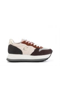 Women's lace-up sneakers in suede and fabric. side silver logo with cafènoir monogram. sole height 30 mm. internal footbed.