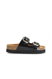 Women's slipper with double buckle. comfortable 4 cm high leather fussbett.