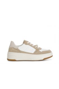 Women's round-shaped leather and suede sneakers. the insole is in leather.