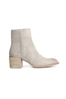 women’s suede ankle boot with decorative braiding taupe