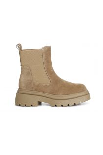 Women's suede ankle boot with elastic bands to make it easier to put on. 55mm high heel. the insole is in leather.