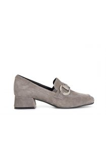 Women's suede moccasin with horsebit. the insole is in leather. 40 mm thick heel.