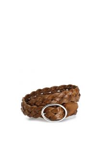 women's woven leather belt tan