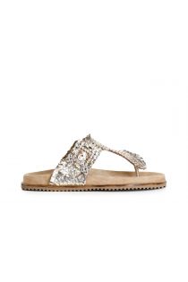 Women’s woven leather flip-slop sandals with rhinestone buckle. leather insole.