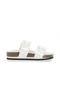 woven raffia double buckle slides white