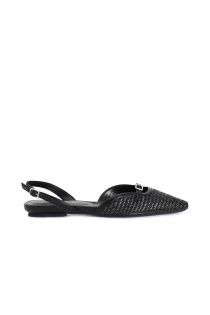 Woven straw slingback with strap and buckle. strap on the back. slim shape with 1.5 cm heel. fashionable comfortable and adding a trendy touch to your look this shoe is a must-have for the season.