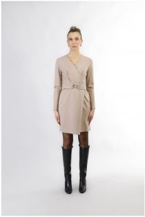 Wrap dress made of stretch milano stitch fabric. long-sleeved dress with crossover neckline. the garment is complete with a fabric sash with cafènoir logo buckle. invisible zip closure on the back. versatile daily garment for different occasions of use.