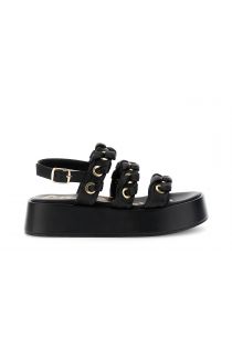 3-strap sandals in nappa leather with eyelets and threading black