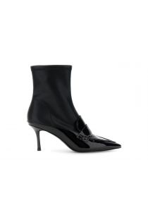 Nappa and patent leather ankle boots with a moccasin-style vamp, inspired by the timeless elegance of Parisian boulevards. The 7.5 cm stiletto heel gracefully elevates every step. An urban poem.