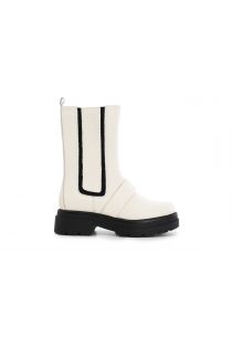 Two-tone leather ankle boots with stretch panel on the side and hot-printed CN logo. Lug outsole