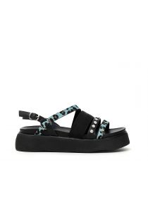 Athletic fabric and suede leather shoe with logo on the side and fluorescent tongue