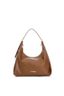 Bag with closure accessory on the handle. single compartment and internal zip pocket. zipper closure.