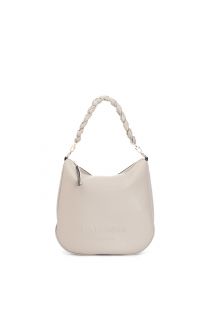 Bag with cafènoir firenze logo in relief and woven chain shoulder strap. zipper closure. removable shoulder strap.