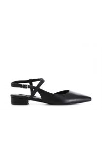 Ballet flats with asymmetrical leather strap. opening at the back. leather insole. 30 mm heel.