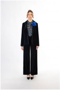 Comfortable unlined blazer without buttons made of textured velvet with an elegant iridescent effect. timeless garment that exudes elegance and style.