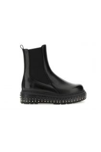 Faux leather ankle boots with elastic side inserts, leather insole, and 3.5 cm platform sole embellished with studs. A bold look and comfort for any occasion.