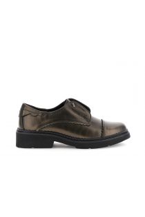 Women's Derby in brushed faux leather with a scalloped trim and decorative button. Leather insole and comfortable 3.5 cm heel.