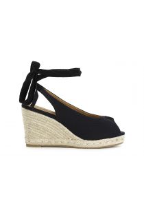 Cord wedge and platform sandals with canvas gladiator lace-up.