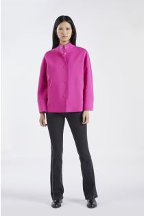 Cape in bonded technical fabric with a contrasting colour inside and raw cut finishes