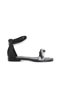 Closed back sandals with zippers enriched by a rhinestone and woven raffia band and studded leather sole with welt. Leather insole and lining.