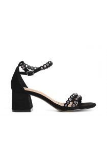 Sandals with rhinestones. reinforced heel in the back. medium heels. adjustable ankle strap and buckle.