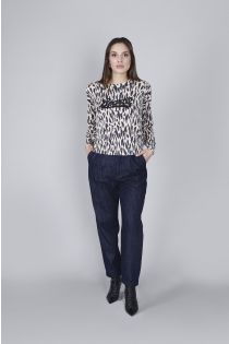 Crew neck sweater in warm wool blend with an animal print and rhinestone-embellished "sportif" lettering. Regular fit for a casual yet sophisticated look. The model is 172 cm tall and wears a size S.