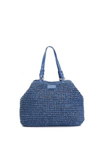 Crocheted tote. handmade. coloured heart charm with raffia border. super capacious can be worn two ways (internal drawstring). magnetic clasp.