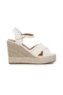 Crossover sandals in frayed fabric on cord platform h90mm