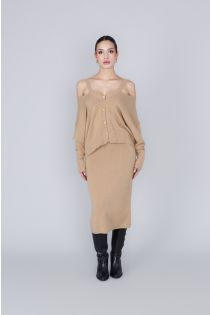 cut out cardigan with "v" neckline camel