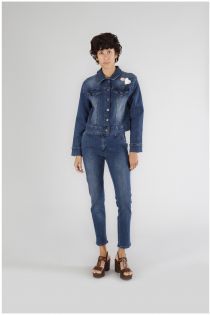 Denim jacket in super-stretch canvas. closure with booties and removable pin. garment that adapts to total denim looks and casual occasions with t-shirts and flat shoes.