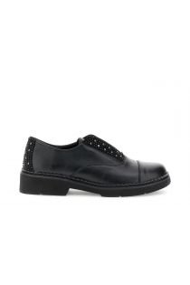 Women's faux leather Derby with rhinestone and stud details, perfect for elegant and bold looks. Leather insole and comfortable 3.5 cm heel. Style and comfort all day long.