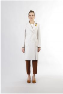 Timeless basic double-breasted coat. the collar is decorated with a brooch. perfect for instantly enhancing everyday looks.