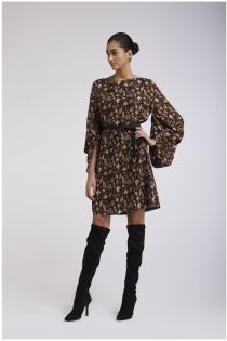 Dress with boat neckline and distinctive balloon sleeves. made of triple georgette with a floral print.