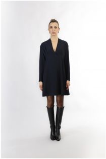 Short dress with deep neckline and enriched by pleats made of fluid fabric. versatile daily garment for different occasions of use to be worn either with a pair of knee-high boots or moccasins.
