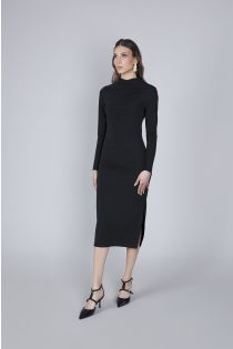 Knee-length jersey dress with long sleeves and a refined ruffled volcano neckline. Perfect for elegant and versatile looks. The model is 173 cm tall and wears a size S. Dress fit: regular.