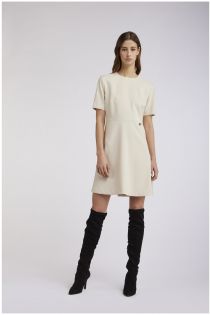 Crew-neck short-sleeved dress with cut-out waist and slightly flared skirt. made of a comfortable bistretch fabric.