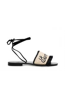 embroidered raffia lace-up slides