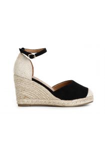 fabric sandals and cord wedge black