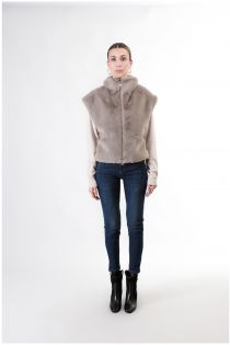Cropped vest with dropped shoulder made of soft rabbit-type faux fur. zipper closure. ideal garment for creating layering