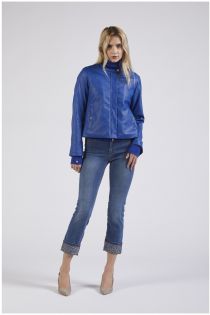 Biker with padded and quilted lining made of leatherette with long sleeves.
