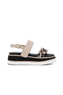 Fisherman sandals with animal print fabric, sole in colourful micro multi-layer and comfortable fussbett.