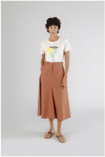 Flared skirt made of garment-dyed parachute canvas. button and front zip closure. elastic waistband in the back. side pockets.
