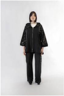 Oversized cape with practical hood. made of cotton sweatshirts. the sleeves are in sequin fabric. this garment is perfect at any time of the day from work to free time also ideal to use as outerwear during periods of seasonal change.